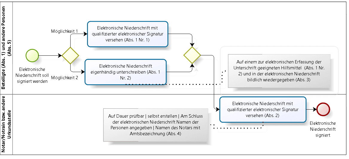 - Zeigt den vollständigen "End-to-End"-Prozess von der Initiierung bis zur final signierten Niederschrift.